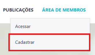 2. Na barra de menu superior, passe o mouse em ‘Área de Membros’ e clique em ‘Cadastrar’: