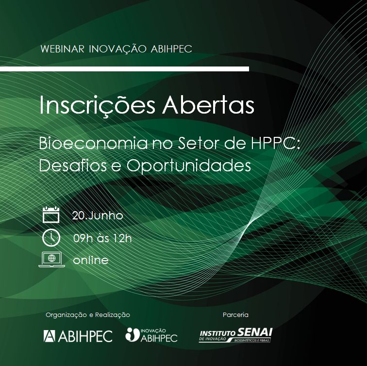 A ABIHPEC irá promover um webinar no dia 20 de junho de 2023 sobre oportunidades e desafios da bioeconomia no setor de HPPC.